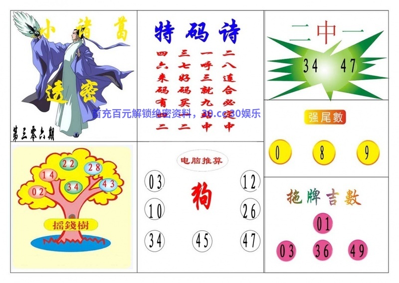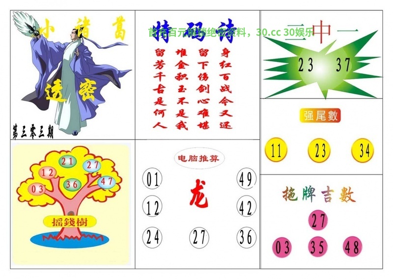 308期:摇钱树网 【二肖四码】 已公开